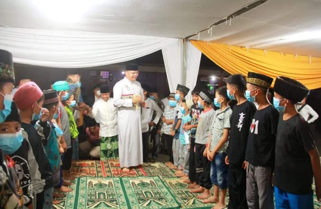 Di Lebong, Gubernur Rohidin disambut antusias masyarakat Desa Tabeak Blau mulai dari orang tua hingga anak-anak yang ikut melaksanakan sholat tarawih bersama.
