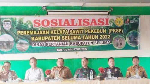 Tais, sc – Bupati Seluma Erwin Octavian, SE membuka Sosialisasi Peremajaan Kelapa Sawit Perkebunan (PKSP) Dinas Pertanian Kabupaten Seluma, Selasa (30/08/2022)