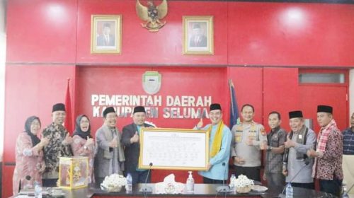 Seluma,sc – Sebagai salah satu bentuk dukungan menuju Seluma berbudaya dan beragama, Bupati seluma Erwin Oktavian SE menyerahkan Piagam Ikrar Persaudaraan antar Suku/Etnis kepada ketua Badan Musyawarah Adat (BMA) Provinsi Bengkulu, S.Efendi MS.SE, Jumat (4/11/2022) di ruang Rapat Bupati Seluma.
