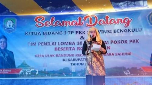 “Kami datang ke sini bersama tim penilai lomba desa. Kedatangan kami juga mengajak masyarakat agar terus termotivasi aktif dan berkarya,” ujar Ketua Bidang Pembinaan Karakter Keluarga TP-PKK Provinsi Bengkulu, Anita Rosjonsyah dalam sambutannya.