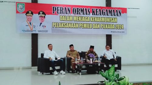 Bengkulu, Selimburcaya.com – Menjelang Pemilu dan Pilkada 2024 ini, Badan Kesatuan dan Kebangsaan Politik (Kesbangpol) Provinsi Bengkulu menggelar sosialisasi Organisasi Kemasyarakatan dan Keagamaan dengan tema “Peran Ormas Keagamaan Dalam Menjaga Kerharmonisan Pelaksaan Pemilu dan Pilkada 2024” di Hotel Adeeva Pantai Panjang Kota Bengkulu, Senin pagi (26/06/2023).