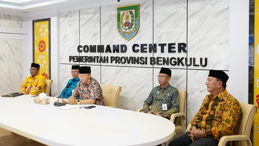 Gubernur Rohidin Mersyah, didampingi Sekda Provinsi Bengkulu, Isnan Fajri.Sedang berdialog secara During dengan tim BPK digedung Command Center Provinsi Bengkulu Minggu 31/03/2024 (Sumber foto : MC Prov.Bkl)