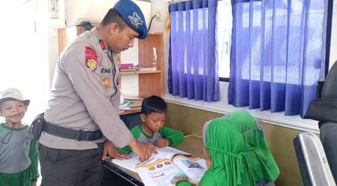 Tak hanya menampilkan beragam koleksi buku yang menarik kepada anak-anak, personil Ditpolairud Polda Bengkulu juga emberikan pemahaman kepada para siswa/siswi tentang tugas-tugas Polisi Perairan.