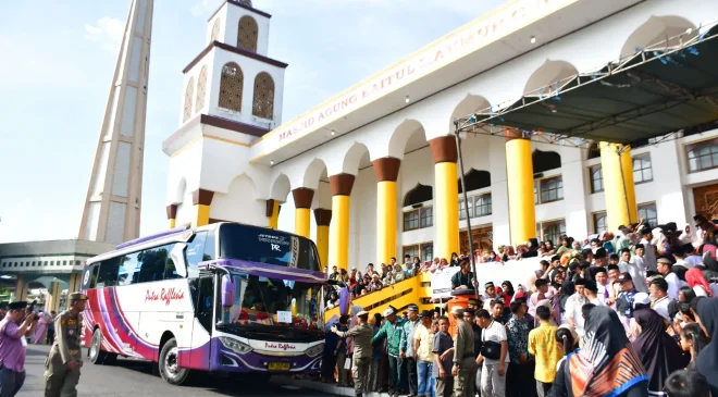 Rejang Lebong, Selimburcaya.com – Bupati Rejang Lebong, Drs. H. Syamsul Effendi, MM melepas 239 jemaah calon haji. Prosesi pelepasan dilaksanakan di Masjid Agung Baitul Makmur Curup pukul 08.00 WIB, Kamis, (16/5).