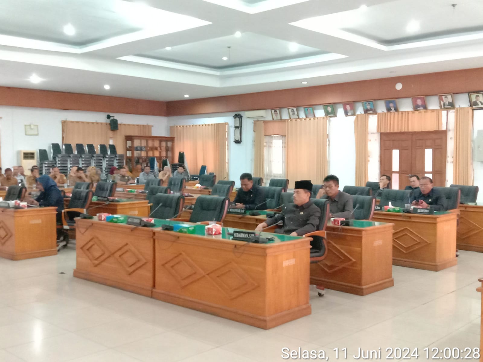 Bengkulu, Selimburcaya.com – DPRD Kabupaten Bengkulu Utara (BU) Provinsi Bengkulu menggelar rapat paripurna untuk mendengarkan jawaban eksekutif atas pandangan umum fraksi-fraksi terkait tiga nota pengantar rancangan peraturan daerah. Rapat tersebut membahas pertanggungjawaban pelaksanaan anggaran pendapatan dan belanja daerah tahun anggaran 2023, rencana pembangunan jangka panjang tahun 2025-2045, dan penyelenggaraan penanaman modal. Rapat berlangsung di ruang rapat paripurna mulai pukul 10:42 WIB pada hari Selasa (11/6/2024).