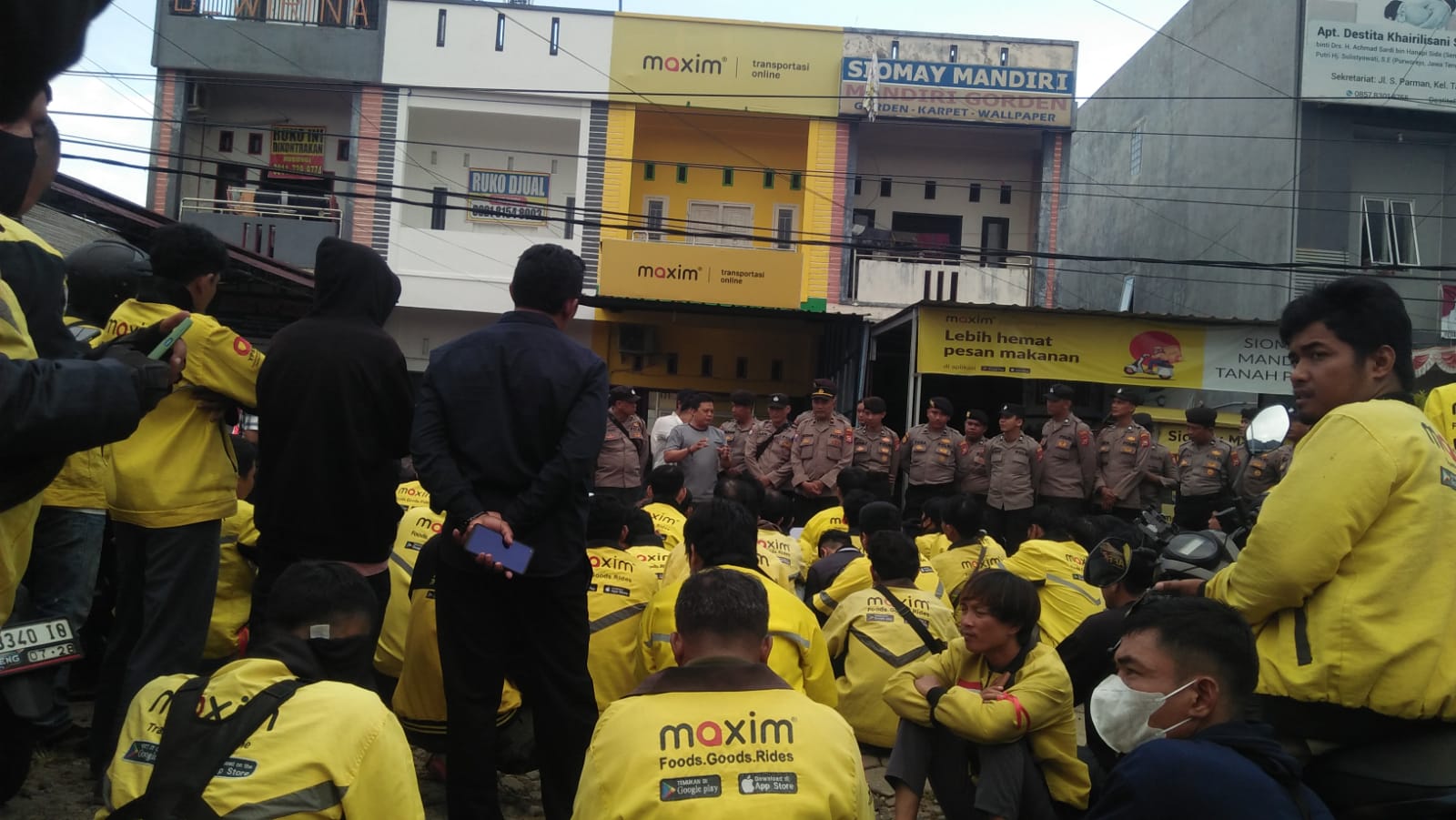 Ratusan driver online dari Maxim mendatangi kantor Maxim di Jalan S. Parman, Kelurahan Tanah Patah, Kota Bengkulu. Mereka menggelar aksi demo untuk menuntut kejelasan dan keadilan terkait berbagai kebijakan yang dinilai merugikan.(12/06/2024)(foto: Yudi/Selimburcaya.com).