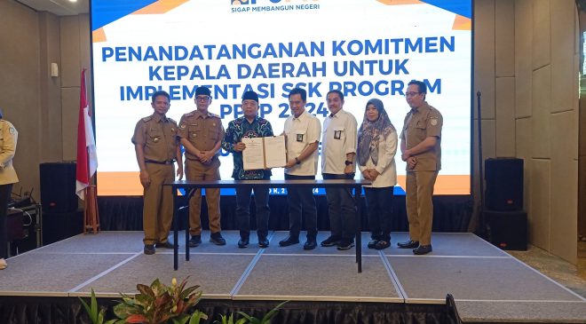 Seluma, Selimburcaya.com – Wakil Bupati Seluma, Drs. H. Gustianto, menandatangani Komitmen Kepala Daerah untuk Implementasi Strategi Sanitasi Kota (SSK) dalam Program Percepatan Pembangunan Sanitasi Permukiman (PPSP) 2024. Acara ini berlangsung di Aula Two K Azana Style Hotel Bengkulu, Selasa (2/7/2024).