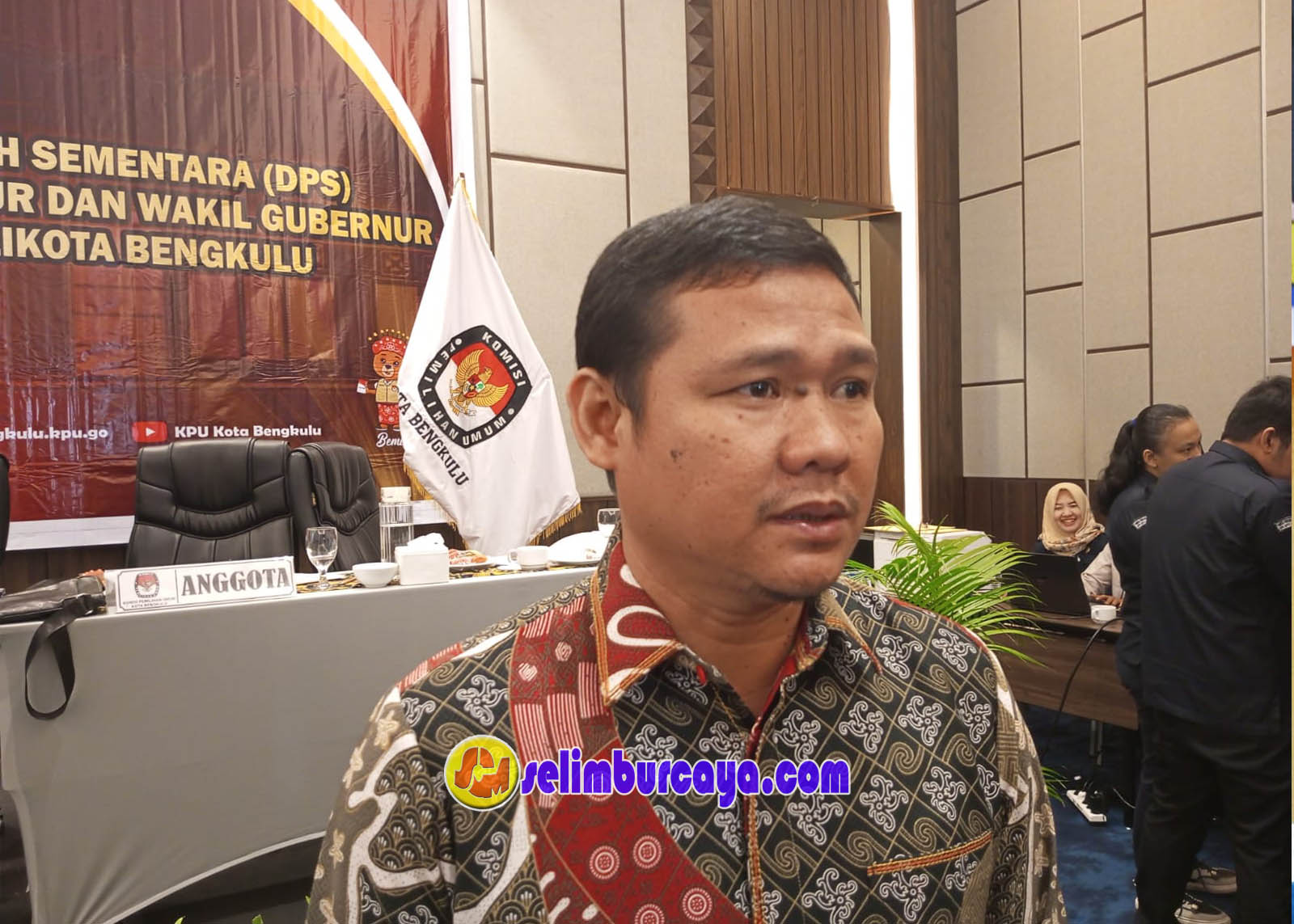 Ketua KPU Kota Bengkulu Rayendra Pirasad, usai menghadiri pleno penetapan daftar pemilih sementara (DPS) di Ballroom Hotel Mercure, Minggu siang (11/08/2024)(foto:Zoel/Selimburcaya.com).