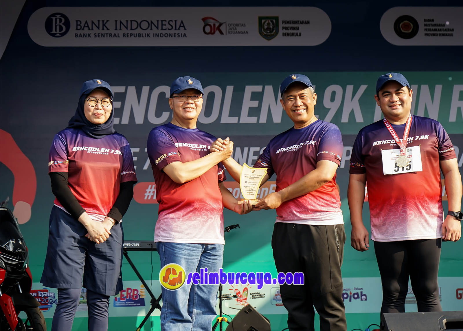 Bengkulu, Selimburcaya.com – Gubernur Bengkulu, Rohidin Mersyah, bersama unsur Forkopimda dan para pelaku industri jasa keuangan di Bengkulu, hadir dalam kegiatan Bencoolen Fun Walk sebagai bagian dari perayaan Bencoolen Fest X BRIEF 2024. Acara ini diselenggarakan oleh Bank Indonesia di Sport Center Pantai Panjang, Bengkulu, pada Minggu pagi (18/8/2024), dengan partisipasi lebih dari 800 peserta.