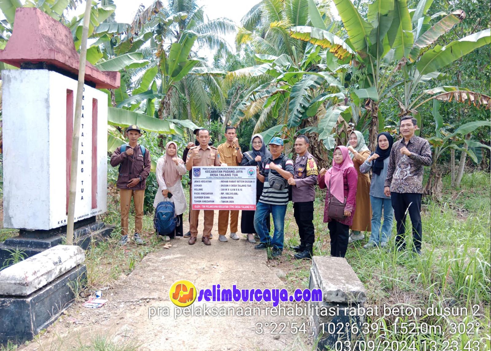Pemerintah Desa Talang Tua, Kecamatan Padang Jaya, Kabupaten Bengkulu Utara, menggelar Musyawarah Pra Pelaksanaan Pembangunan Titik Nol Rehabilitasi Rabat Beton (04/09/2024)(foto:Robi/Selimburcaya.com).