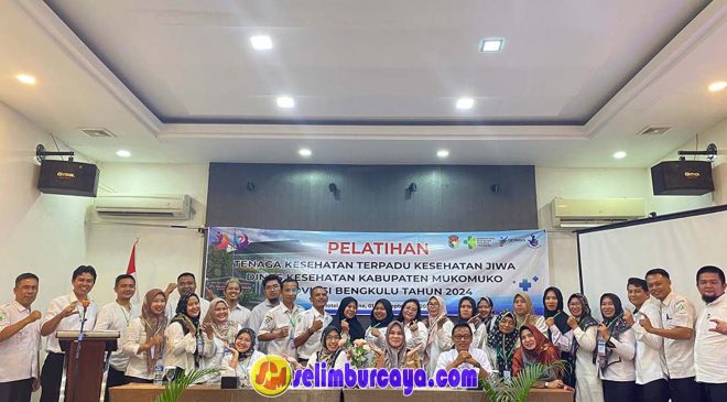 Mukomuko, Selimburcaya.com – Sebanyak 30 tenaga medis asal Kabupaten Mukomuko mengikuti pelatihan kesehatan terpadu untuk penanganan kesehatan jiwa. Pelatihan ini dilaksanakan di Hotel Madeline, Kota Bengkulu, mulai 2 hingga 6 September 2024. Kegiatan ini bertujuan meningkatkan kemampuan tenaga medis dalam menangani kasus gangguan jiwa di Fasilitas Pelayanan Kesehatan Primer (FKTP).
