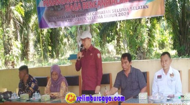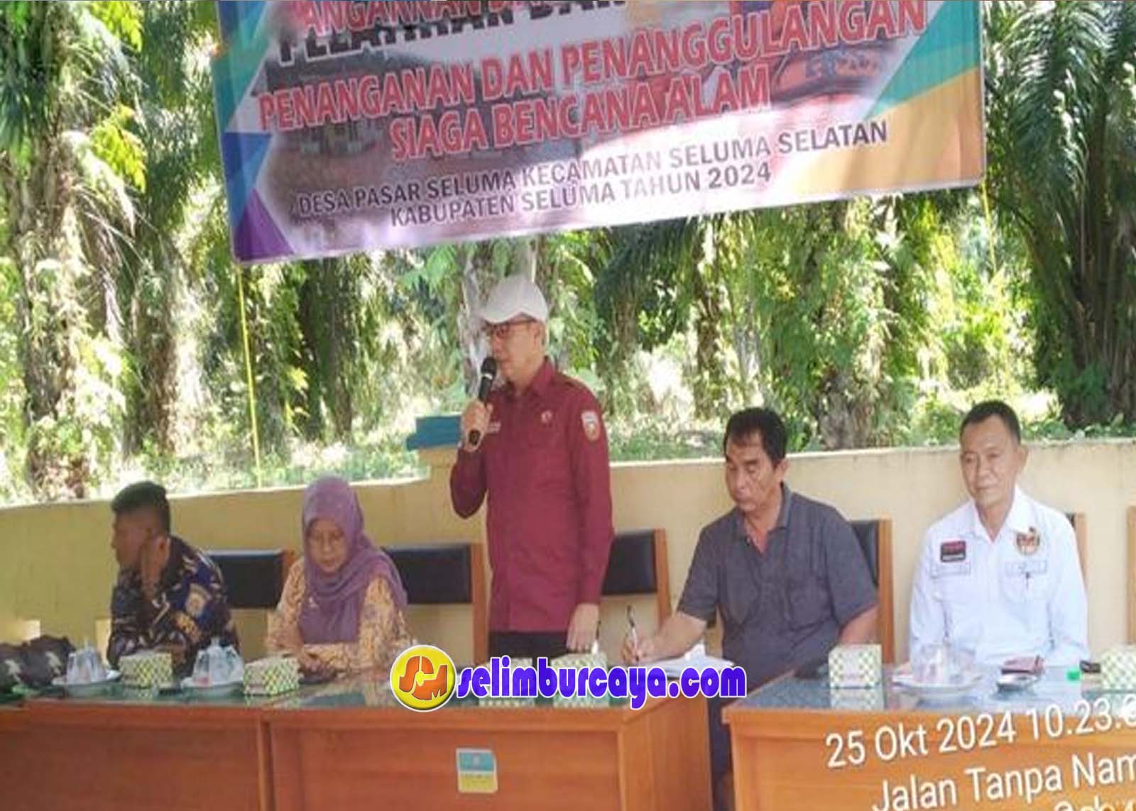 Seluma, Selimburcaya.com – Asisten Pemerintahan dan Kesra Setda Kabupaten Seluma, H. Hendarsyah, S.IP, MT, resmi membuka kegiatan Sosialisasi dan Simulasi Penanganan dan Penanggulangan Bencana Alam yang dilaksanakan di Desa Pasar Seluma, Kecamatan Seluma Selatan, Jumat (25/10/2024). Kegiatan ini dijadwalkan berlangsung selama dua hari dan diikuti oleh perangkat desa, Karang Taruna, perwakilan pemuda, perwakilan perempuan, tenaga Puskesmas, dan masyarakat setempat.