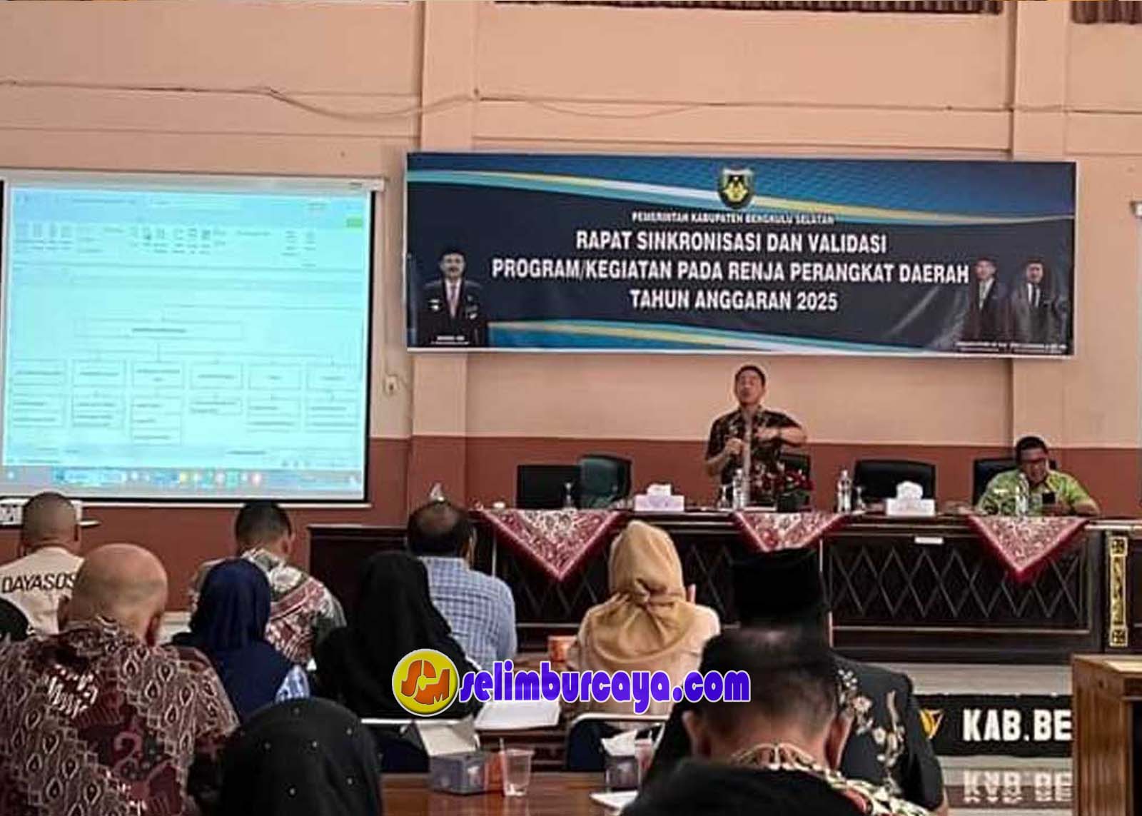 Bengkulu Selatan, Selimburcaya.com – Pemerintah Daerah Kabupaten (Pemkab) Bengkulu Selatan melalui Badan Perencanaan Pembangunan Daerah, Penelitian dan Pengembangan (Bappeda-Litbang) menggelar rapat sinkronisasi dan validasi program kegiatan pada Rencana Kerja (Renja) perangkat daerah tahun anggaran 2025. Kegiatan yang berlangsung di aula Bappeda-Litbang ini dibuka oleh Sekretaris Daerah (Sekda) Bengkulu Selatan, Sukarni, M.Si, dan dihadiri seluruh Kepala OPD, pejabat fungsional perencanaan, Camat, serta perwakilan dari DPRD dan Inspektorat Daerah.