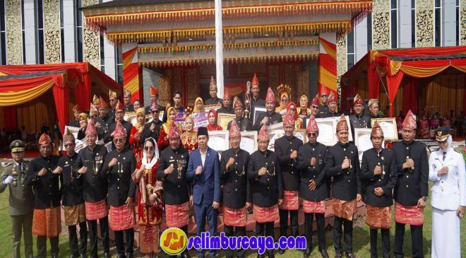 Bengkulu, Selimburcaya.com – Peringatan Hari Ulang Tahun (HUT) ke-56 Provinsi Bengkulu berlangsung dengan khidmat di halaman Kantor Gubernur Bengkulu pada Senin, 18 November 2024. Upacara tersebut dihadiri oleh berbagai unsur Forkopimda serta tamu undangan lainnya, termasuk Komandan Korem 041/Gamas, Brigjen TNI Rachmad Zulkarnaen, yang hadir mengenakan pakaian adat Bengkulu.