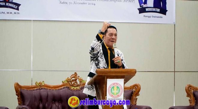 Bengkulu, Selimburcaya.com – Dalam rangka memperingati Hari Guru Nasional 2024, Plh Sekretaris Daerah Provinsi Bengkulu, Haryadi, menyampaikan tiga pesan penting kepada para guru dan tenaga pendidik di Bengkulu. Pesan ini menjadi pengingat akan peran strategis guru sebagai agen perubahan dalam mencetak generasi muda yang unggul. Acara tersebut digelar pada Sabtu, 30 November 2024, di LPMP Singgaran Pati, Kota Bengkulu, dan dihadiri oleh berbagai tokoh pendidikan.