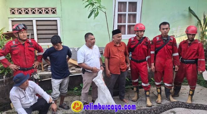 Bengkulu, Selimburcaya.com – Untuk kesekian kalinya, Tim Rescue Dinas Pemadam Kebakaran dan Penyelamatan Kota Bengkulu melakukan evakuasi ular Python berukuran besar. Setelah sebelumnya mengevakuasi ular di Hotel Grage (Horizon), kali ini petugas berhasil mengevakuasi ular sepanjang 5 meter di Hotel Gumay, Tanah Patah, Kemarin Sore