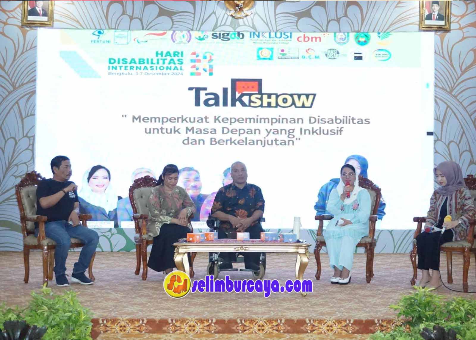 Bengkulu, Selimburcaya.com – Dalam rangka peringatan Hari Disabilitas Internasional (HDI) 2024, talkshow bertema “Memperkuat Kepemimpinan Disabilitas untuk Masa Depan yang Inklusif dan Berkelanjutan” berlangsung di Balai Raya Provinsi Bengkulu, Sabtu (7/12/2024). Acara ini menyoroti pentingnya dukungan pemerintah terhadap hak-hak penyandang disabilitas, khususnya dalam aksesibilitas, pendidikan, dan kesehatan.
