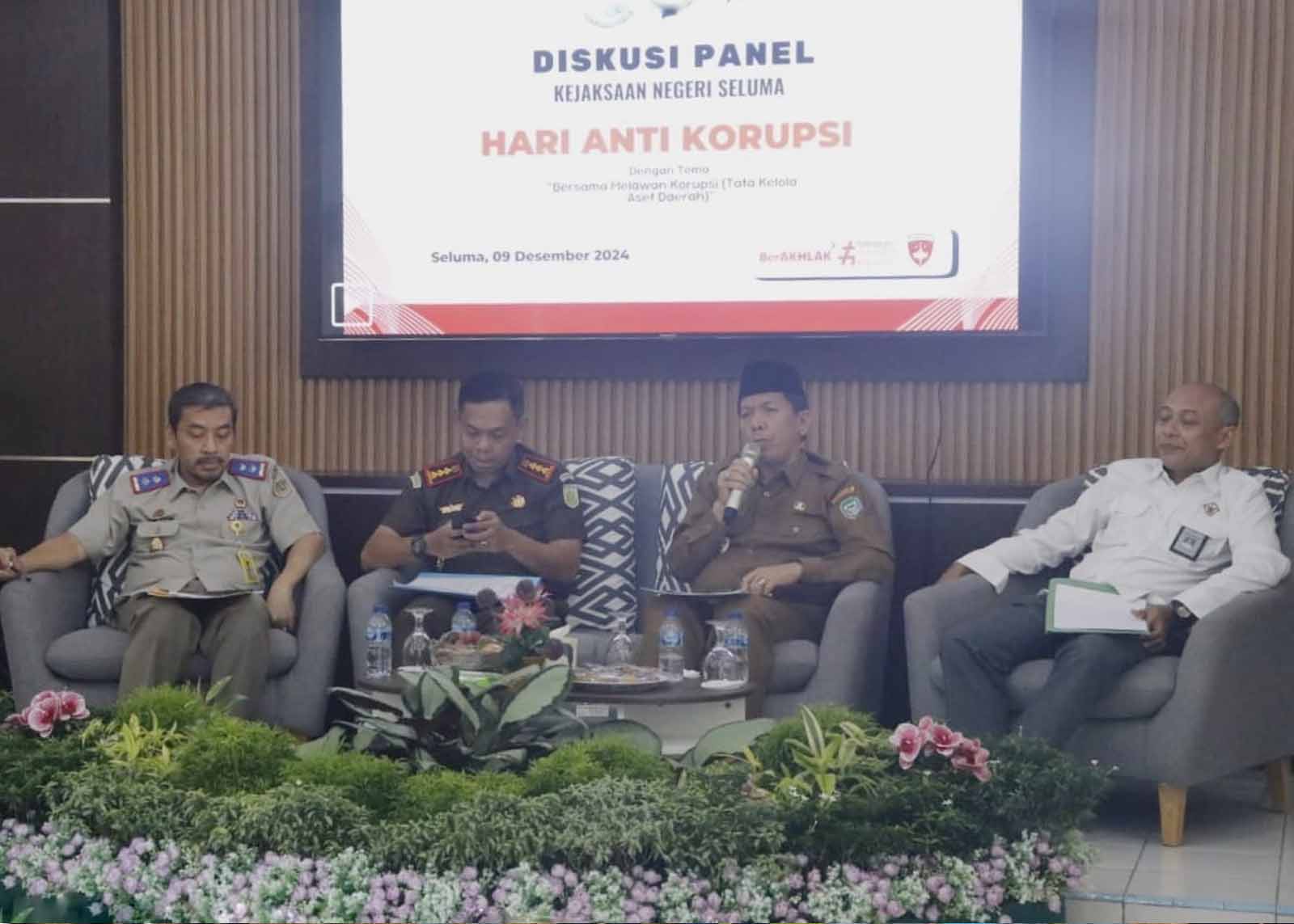 Seluma, Selimburcaya.com – Dalam rangka memperingati Hari Anti Korupsi, Kejaksaan Negeri Seluma menggelar diskusi panel bertema tata kelola aset di Aula Kejaksaan Negeri Seluma, Senin (9/12/2024). Kegiatan ini menghadirkan sejumlah narasumber, termasuk Sekretaris Daerah Kabupaten Seluma, H. Hadianto, S.E., M.M., M.Si, Kepala Kejaksaan Negeri Seluma, Dr. Eka Nugraha, S.H., M.H., Perwakilan BPK RI Antonius Suci Ari Septio, serta Kepala Kantor Pertanahan Kabupaten Seluma, Bapak Mursidno, S.SiT, M.H., C.Med, QRMP.