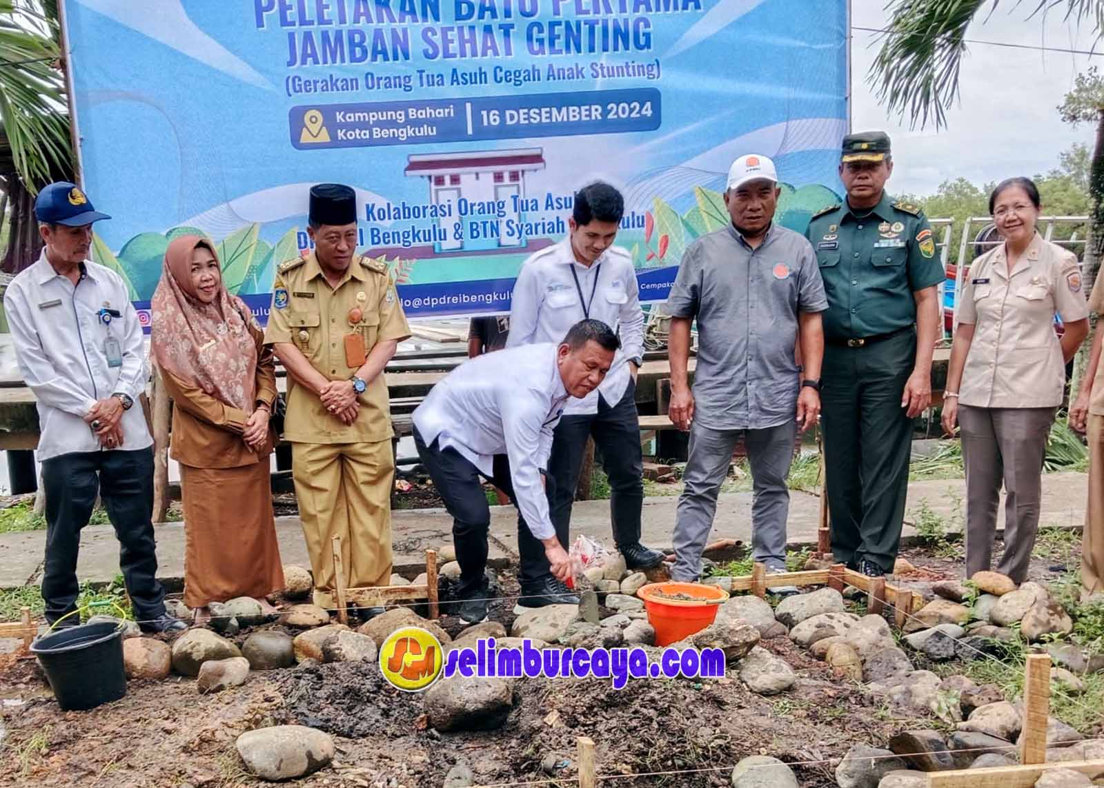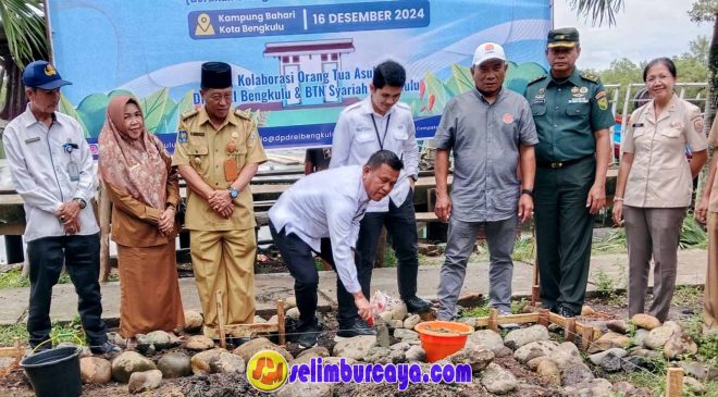 Bengkulu,Selimburcaya.com — Dalam upaya mendukung Gerakan Orang Tua Asuh Cegah Stunting (Genting), Perwakilan Badan Kependudukan dan Keluarga Berencana Nasional (BKKBN) Bengkulu bersama Bank BTN Syariah Bengkulu dan DPD Real Estate Indonesia (REI) Bengkulu melaksanakan peletakan batu pertama pembangunan jamban sehat di Kampung KB Kampung Sejahtera, Sumberjaya, Kecamatan Kampung Melayu, Kota Bengkulu.