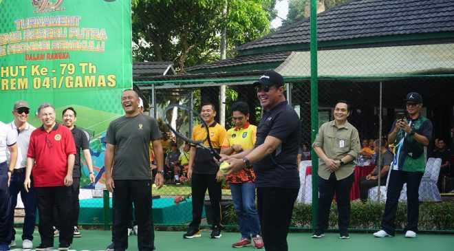 Bengkulu, Selimburcaya.com – Dalam rangka mempererat silaturahmi, meningkatkan kekompakan, dan membangun semangat kebersamaan, Korem 041/Garuda Emas menggelar Turnamen Tenis Beregu Putra se-Provinsi Bengkulu.