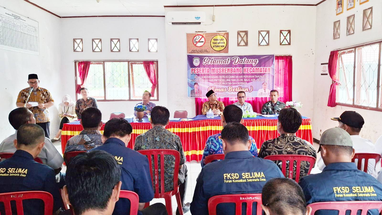 Seluma, Selimburcaya.com – Pemerintah Kabupaten Seluma terus mengupayakan pembangunan yang berkelanjutan. Kamis (20/02/2025), Musyawarah Rencana Pembangunan (Musrenbang) Tingkat Kecamatan Air Periukan resmi dibuka oleh Asisten Perekonomian dan Pembangunan Setda Kabupaten Seluma, Almedian Saleh, SKM, ME. Acara yang berlangsung di Aula Kecamatan Air Periukan ini dihadiri oleh Bappeda Kabupaten Seluma, seluruh Kepala Desa, BPD se-Kecamatan Air Periukan, serta tamu undangan lainnya.