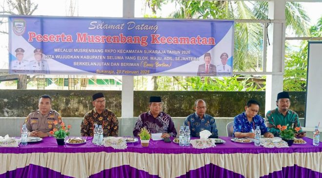 Seluma, Selimburcaya.com – Pemerintah Kabupaten Seluma terus mendorong pembangunan yang berbasis partisipasi masyarakat. Kamis (20/02/2025), Musyawarah Rencana Pembangunan (Musrenbang) Tingkat Kecamatan Sukaraja resmi dibuka oleh Staf Ahli Bidang Pemerintahan, Hukum, dan Politik, Suardi, SH, MH di Aula Kantor Camat Sukaraja. Acara ini dihadiri oleh unsur Tripika Kecamatan Sukaraja, Bappeda Kabupaten Seluma, lurah dan kepala desa beserta BPD se-Kecamatan Sukaraja, serta tokoh masyarakat.