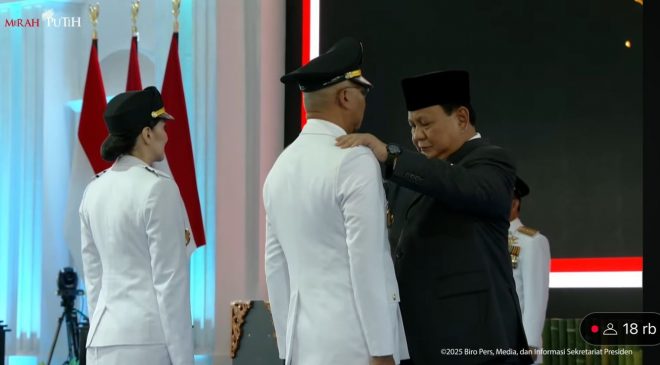 “Hari ini merupakan momen bersejarah karena untuk pertama kalinya pelantikan 961 kepala daerah dilakukan secara serentak di Istana Negara. Ini membuktikan bahwa Indonesia adalah bangsa besar dengan sistem demokrasi yang berjalan dinamis,” ujar Presiden Prabowo dalam sambutannya.