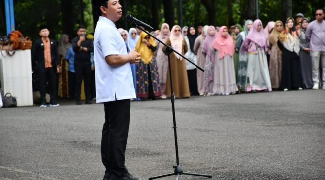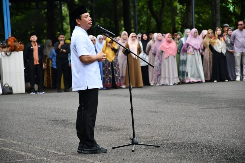 Dedy Wahyudi, saat memimpin apel pagi bersama seluruh Aparatur Sipil Negara (ASN) di lingkungan Pemerintah Kota (Pemkot) Bengkulu Senin (03/03/2025)(foto:Zoel/Selimburcaya.com)