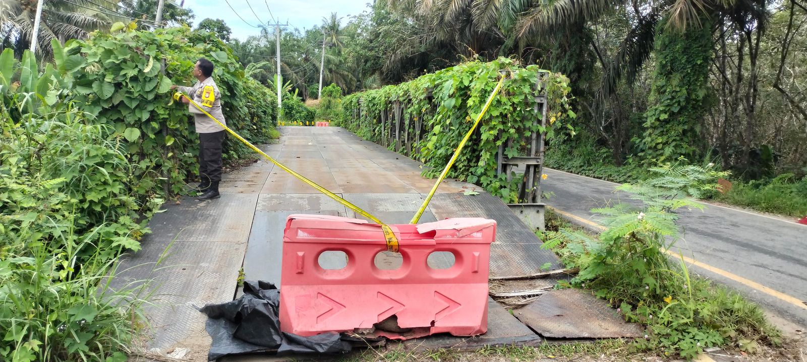 “Saat ini posisi jembatan sudah kita tutup lantaran sudah banyak korbannya, terutama saat malam hari di mana pencahayaan masih minim. Kita telah memasang police line dan barier sebagai tanda kepada pelintas untuk tidak melalui jembatan,” tegas Kapolsek.