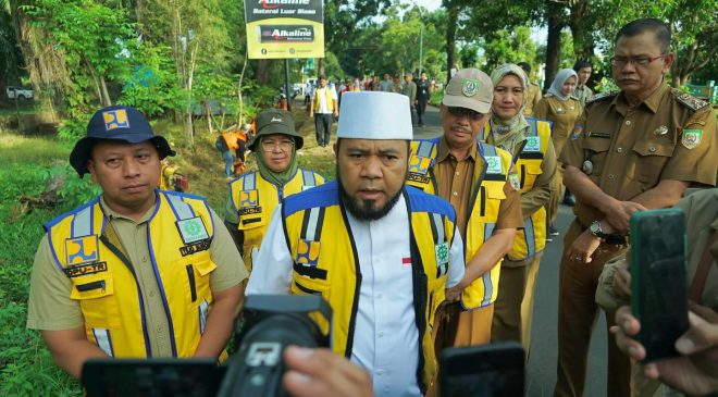 Bengkulu, Selimburcaya.com – Gubernur Bengkulu, Helmi Hasan, memimpin langsung aksi “Tebas Bayang” atau pembersihan rumput liar di sepanjang jalan depan Lapangan Golf Lingkar Barat, Kota Bengkulu, pada Selasa (11/3). Kegiatan ini merupakan bagian dari program 100 hari pemerintahannya untuk memastikan median jalan bebas dari semak belukar yang dapat mengganggu jarak pandang pengendara.