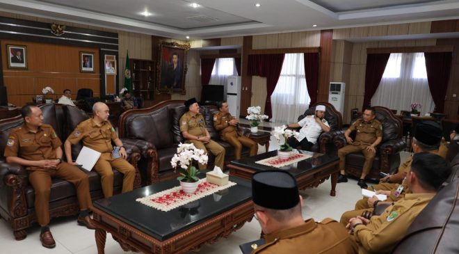 Bengkulu Tengah, Selimburcaya.com – Bupati Bengkulu Tengah, Drs. Rachmat Riyanto, ST, M.AP, didampingi Wakil Bupati Tarmizi, S.Sos, Pj Sekretaris Daerah Drs. Hendri Donal, SH, MH, serta sejumlah Kepala Organisasi Perangkat Daerah (OPD), melakukan silaturahmi dan koordinasi dengan Gubernur Bengkulu, H. Helmi Hasan, SE. Pertemuan ini bertujuan untuk membahas program pembangunan yang akan dilaksanakan ke depan.