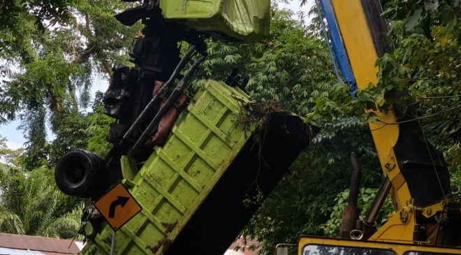 Bengkulu Tengah, Selimburcaya.com – Satlantas Polres Bengkulu Tengah berhasil mengevakuasi truk bermuatan batubara yang terperosok ke jurang di kawasan Liku Sembilan, Kecamatan Taba Penanjung, pada Jumat (14/3). Proses evakuasi yang dimulai pukul 08.00 WIB dan selesai pukul 09.40 WIB berjalan lancar dengan penutupan total arus lalu lintas selama evakuasi berlangsung.