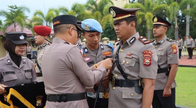 upacara Serah Terima Jabatan (Sertijab) sejumlah perwira penting, termasuk Kasat Reskrim dan dua Kapolsek. jumat(11/04/2025)(foto:Zoel/Selimburcaya.com).