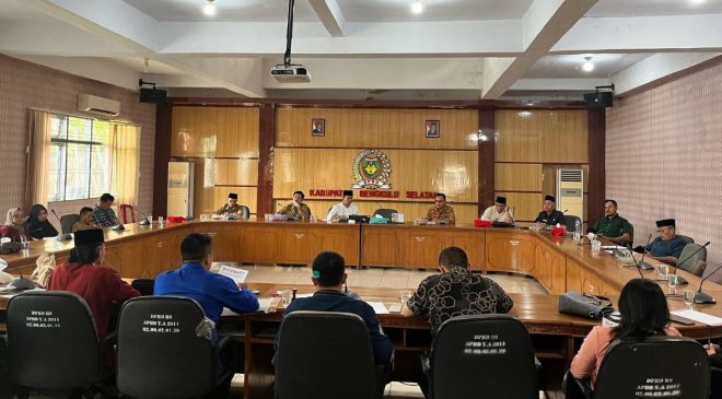 Kedatangan rombongan OKP disambut langsung oleh Ketua DPRD Bengkulu Selatan, Juli Hartono, bersama sejumlah anggota dewan lainnya. Senin (14/04/2025)(foto:Zoel/Selimburcaya.com)
