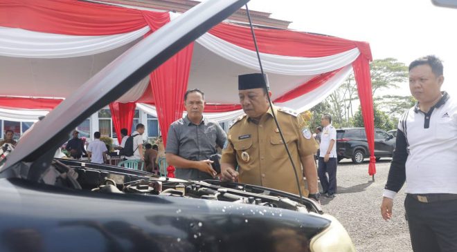 Seluma, Selimburcaya.com– Demi memastikan tertib administrasi dan kondisi kendaraan operasional yang prima, Wakil Bupati Seluma, Drs. H. Gustianto, melakukan pemeriksaan langsung terhadap seluruh kendaraan dinas milik Pemerintah Kabupaten Seluma. Kegiatan ini berlangsung di Halaman Kantor Bupati Seluma dan diikuti oleh berbagai OPD yang memiliki kendaraan dinas.