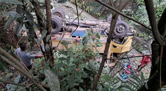 “Rem blong karena berusaha menghindari motor, truk kemudian hilang kendali dan masuk ke jurang,” jelas AKP Sinar.