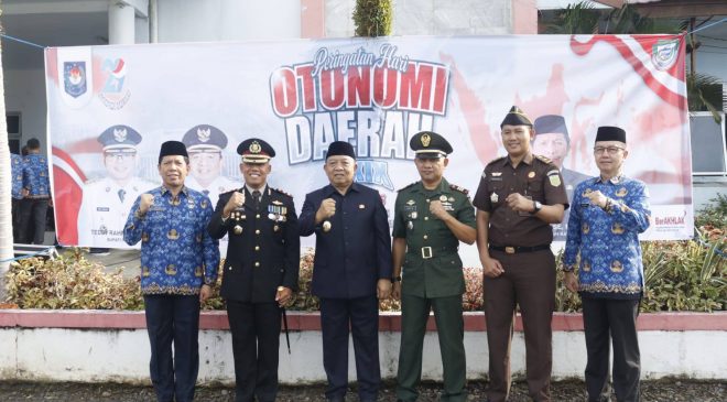 Seluma, Selimburcaya.com – Wakil Bupati Seluma, Drs. H. Gustianto, memimpin langsung upacara peringatan Hari Otonomi Daerah ke-29 yang digelar di halaman Kantor Bupati Seluma, Jumat (25/4/2025). Upacara ini dihadiri oleh jajaran Forum Koordinasi Pimpinan Daerah (Forkopimda), Sekretaris Daerah Kabupaten Seluma, para Asisten dan Staf Ahli, pejabat Eselon II dan III, serta seluruh staf ASN dan non-ASN di lingkungan Pemerintah Kabupaten Seluma.