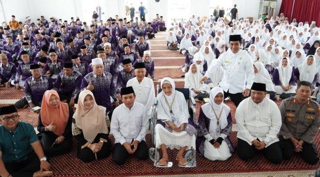Dalam sambutannya, Wali Kota Dedy Wahyudi menyampaikan ucapan selamat kepada seluruh JCH yang akan menunaikan rukun Islam kelima. Ia juga mengingatkan pentingnya menjaga kesehatan, keselamatan, dan perilaku selama dalam perjalanan menuju Tanah Suci. Sabtu (26/04/2025)(foto:Zoel/Selimburcaya.com)