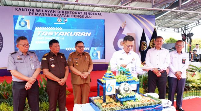 Kota Bengkulu, Selimburcaya.com – Memperingati Hari Bhakti Pemasyarakatan (HBP) ke-61, Sekretaris Daerah (Sekda) Kota Bengkulu, Arif Gunadi, menghadiri acara tasyakuran yang berlangsung di Lapangan Lembaga Pemasyarakatan (Lapas) Kelas II A Bengkulu, Senin (28/4/2025).