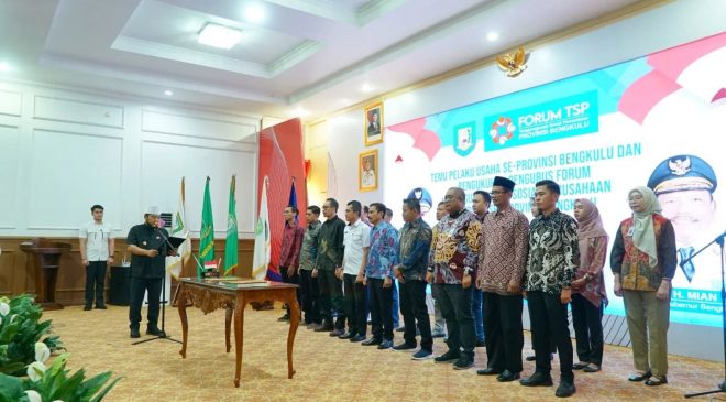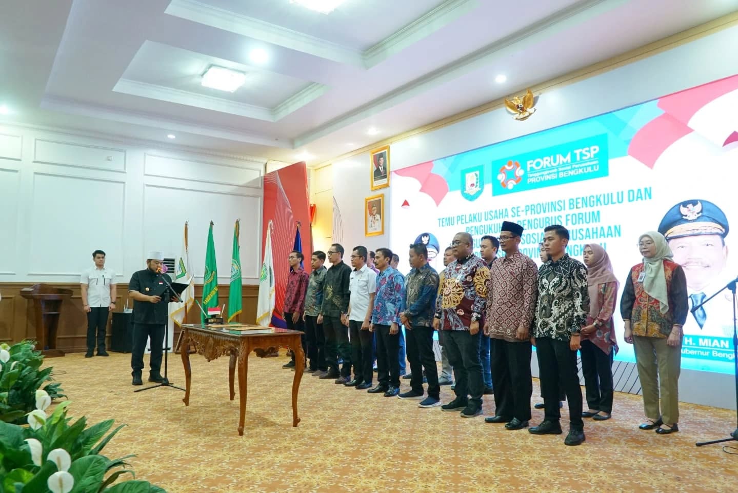 Pada kesempatan itu, dilakukan juga pengukuhan pengurus Forum TSP Provinsi Bengkulu, yang kini diketuai oleh M. Zen Sunardi dari PT Roda Teknindo Pura Jaya.