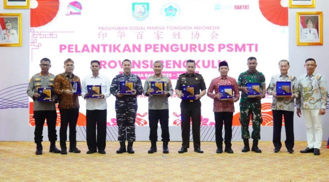 Bengkulu, Selimburcaya.com — Bertempat di Balai Raya Semarak, Rabu (21/5/2025), Wali Kota Bengkulu Dedy Wahyudi menghadiri pelantikan pengurus Paguyuban Sosial Marga Tionghoa Indonesia (PSMTI) Provinsi Bengkulu masa bakti 2025–2029. Acara berlangsung khidmat dan meriah, disaksikan langsung oleh Gubernur Bengkulu Helmi Hasan, Wakil Gubernur Mian, unsur Forkopimda Provinsi, serta tamu undangan lainnya.