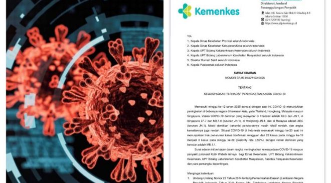 Jakarta, Selimburcaya.com – Setelah sempat mereda, kasus Covid-19 kembali menunjukkan peningkatan di sejumlah negara Asia Tenggara pada tahun 2025 ini, termasuk di Singapura, Thailand, dan Hongkong. Kementerian Kesehatan Republik Indonesia (Kemenkes RI) merespons cepat dengan menerbitkan Surat Edaran (SE) kepada seluruh Dinas Kesehatan provinsi dan kabupaten/kota di Indonesia.