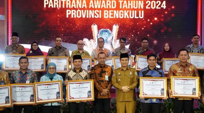 Bengkulu, Selimburcaya.com — Wali Kota Bengkulu Dedy Wahyudi resmi menerima Piagam Paritrana Award Tingkat Provinsi Bengkulu sebagai Pemerintah Kabupaten/Kota Terbaik I dalam perlindungan jaminan sosial ketenagakerjaan. Penghargaan diserahkan pada acara yang digelar di Hotel Santika Bengkulu, Selasa (3/6/2025).