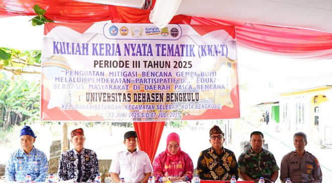 Bengkulu, Selimburcaya.com— Wali Kota Bengkulu, Dedy Wahyudi, memberikan sambutan hangat atas pelaksanaan Kuliah Kerja Nyata Tematik (KKN-T) Periode III Tahun 2025 Universitas Dehasen Bengkulu. Kegiatan yang diikuti 273 mahasiswa ini diharapkan dapat membawa dampak nyata bagi masyarakat, khususnya dalam mengubah budaya kebersihan.
