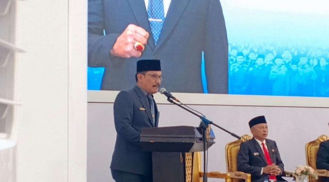 BKPSDM Kota Bengkulu Achrawi, memberikan peringatan tegas kepada seluruh Aparatur Sipil Negara (ASN) Pegawai Pemerintah dengan Perjanjian Kerja (PPPK) di lingkungan Pemerintah Kota Bengkulu untuk menjaga integritas, mematuhi aturan, dan menunjukkan kinerja optimal.Senin (16/05/2025)(foto:Zoel/Selimburcaya.com)