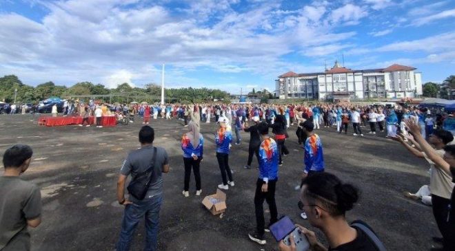 Bengkulu Tengah, Selimburcaya.com — Pemerintah Kabupaten Bengkulu Tengah (Pemkab Benteng) menggelar senam jantung sehat bersama masyarakat dalam rangka memperingati HUT ke-17 kabupaten tersebut. Kegiatan berlangsung meriah di Lapangan Gunung Bungkuk, tepat di belakang Kantor Bupati Bengkulu Tengah.