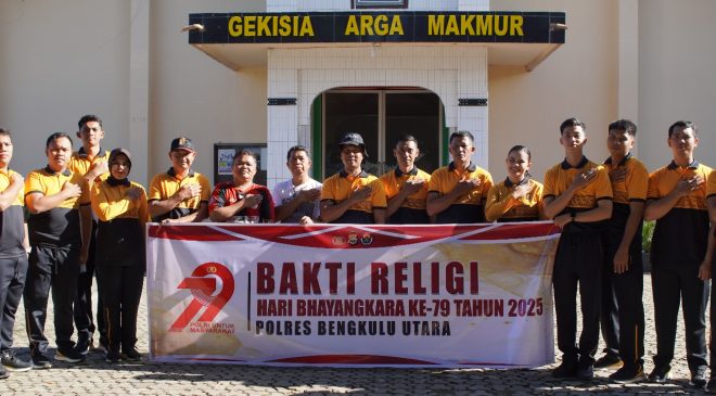 Bengkulu Utara, Selimburcaya.com – Menyambut Hari Bhayangkara ke-79, seluruh jajaran Polsek di bawah naungan Polres Bengkulu Utara (BU) melaksanakan kegiatan bakti religi secara serentak di berbagai tempat ibadah. Aksi ini dilakukan sebagai bentuk pengabdian Polri sekaligus mempererat hubungan dengan masyarakat.
