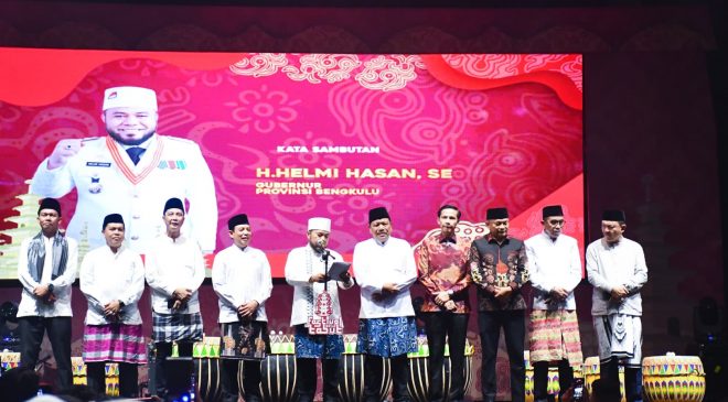 Bengkulu, Selimburcaya.com – Festival Tabut Bengkulu 2025 resmi dibuka pada Jumat malam, 27 Juni 2025, di Lapangan Sport Center Pantai Panjang Bengkulu. Dengan mengusung tagline “Semarak Muharam Bengkulu”, acara dibuka langsung oleh Gubernur Bengkulu Helmi Hasan yang didampingi Wakil Gubernur Rosjonsyah, Wali Kota, serta para bupati dan wakil bupati se-Provinsi Bengkulu.