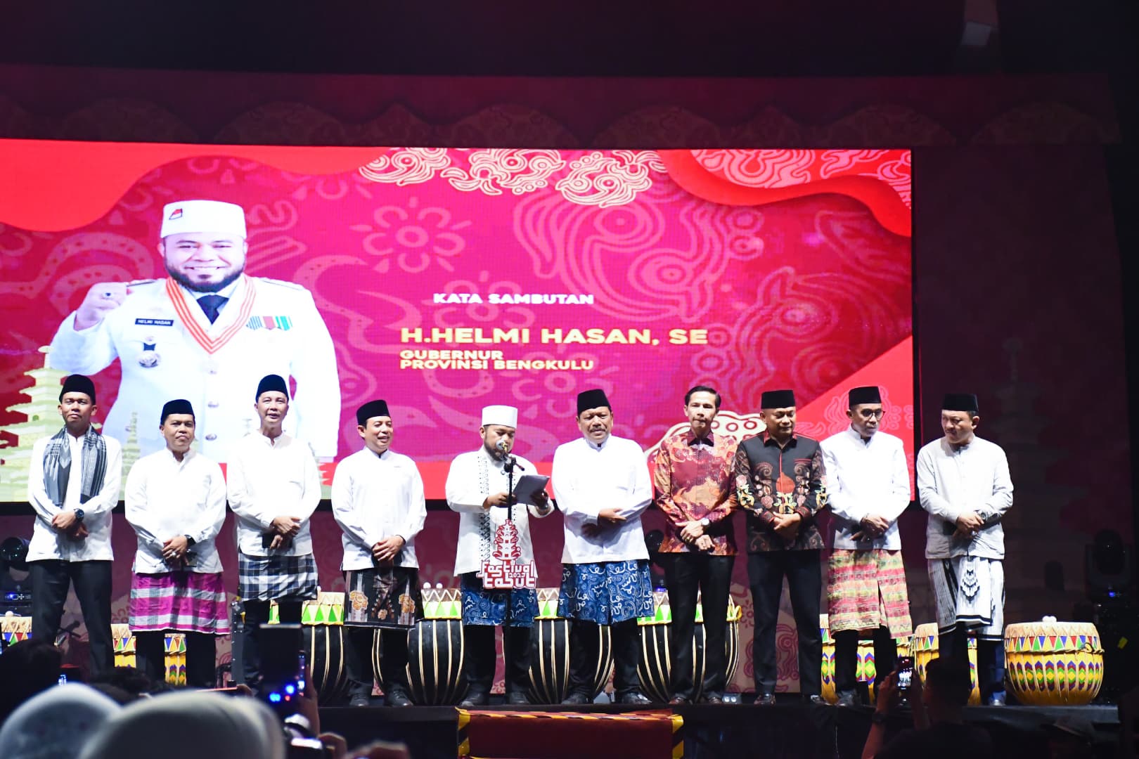 “Atas nama Pemprov, Pemkot, dan Pemkab kami mengucapkan terima kasih kepada semua pihak yang telah berkontribusi dan mendoakan kelancaran acara ini. Kepada tamu dari kementerian dan provinsi tetangga, kami sampaikan salam hormat dan terima kasih atas partisipasinya,” ujar Gubernur Helmi Hasan dalam sambutannya.