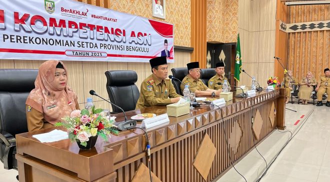 Bengkulu, Selimburcaya.com – Pemerintah Provinsi Bengkulu menggelar Uji Kompetensi Aparatur Sipil Negara (ASN) di lingkungan Biro Perekonomian Sekretariat Daerah (Setda) Provinsi Bengkulu. Kegiatan ini berlangsung di Gedung Pola Kantor Gubernur Bengkulu, Senin (8/7/2025), dan dibuka langsung oleh Penjabat Sekretaris Daerah (Sekdaprov) Bengkulu, Herwan Antoni.